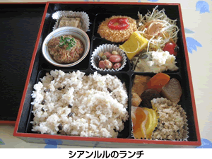 出発して2時間半、昼食をいただく十勝清水の公園内にあるお店に到着しました。こちらでは地元食材を使ったヘルシーな食事をいただきました。食後にとうもろこしのお茶もいただきましたが、独特の香ばしい香りによってお腹もいっぱいになり、大満足です。