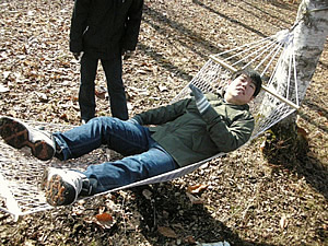 はじめての参加でしたが、自然の中でゆったりと過ごすことができてとてもいい時間でした。息子は白樺林のなかのハンモックが気に入ったようでした。森林浴で自分癒し……いいですよ!