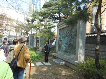 しかし、一方では日本帝国主義の独裁に立ち向かい、独立運動を行なった民衆たちが虐殺された堤岩教会、独立運動家たちが(そして後には民主化運動家たちが)弾圧された西大門刑務所博物館、タプコル公園などを案内された、韓国は侵略された国であり、日本は侵略した国だという事実でした。