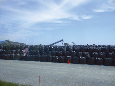 浪江町には放射性廃棄物の中間貯蔵施設が建設され、フレコンバッグが整然と高く積まれていました。