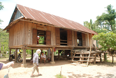 帰途、少数民族の子供たちと交流。高床式の家に住み、裸足で遊ぶ子供たち。