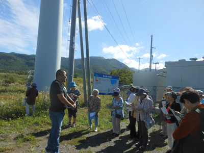 2日目は青空のもと寿都の風力発電所見学、私はたいした予備知識もないまま役場の方の説明を聞き、寿都の"地の利"を生かした風力発電が20年近く経過している事を初めて知ることができました。風力発電で得た利益は、何年か前から水道料の補助をしたり、診療所の赤字補てんに使われたりなど町づくりに還元されていて、町民からは大変喜ばれているようです。今年は一世帯12,000円の地元の商店街で使える地域振興券を配布したそうです。うらやましいですね。