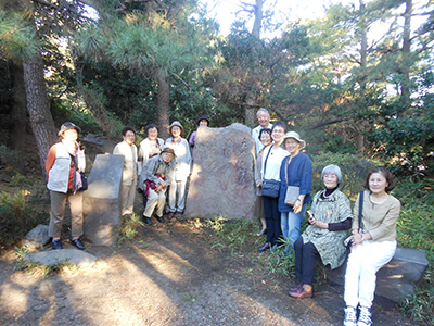 初日、羽田空港に到着すると同時に、平塚らいてうの会会長である米田佐代子先生がバスに同乗して、らいてうについて深い分析と調査に基づくお話が続きました。らいてう所縁の茅ケ崎(神奈川県)へ行き、夫となった奥村博史と出会った運命の場所、当時東洋一のサナトリウム(結核療養所)といわれた「南湖院」や「らいてうの碑」のある公園内を米田先生に案内してもらいました。