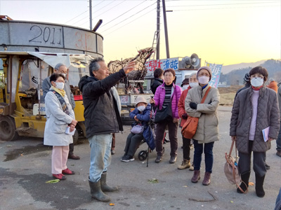 「いつまでこのツアー続けるの」「もう、いいんじゃない。復興にむかっているみたいだし」という思いが半分。見るだけではなく、現地で当事者の話を聞くこと。スタディツアーはこれが一番。そう思い直し、宝鏡寺の伝言館と福島第一原発の視察、鈴木安蔵の生家がコースに入っているので、「今しかない」そんな気持ちで参加させていただきました。