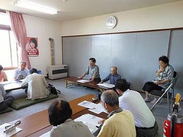 碑を囲んで記念撮影した後、町内会館で交流会が開かれ、「伝える会」の三上勝夫会長が、劉さんが拉致されてから救出されるまでを詳細に話されました。会場では採れたての真っ赤なトマトと西瓜がもてなされ、和やかな歓談が続きました。