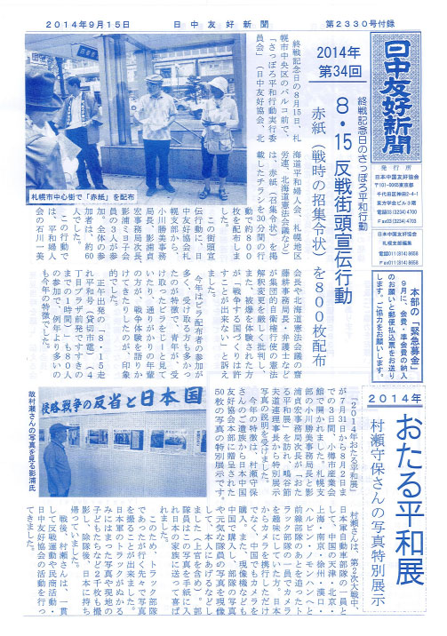 毎年のことですが、当別新聞と日中友好新聞が、当日の様子を載せてくださいましたのでご紹介します。